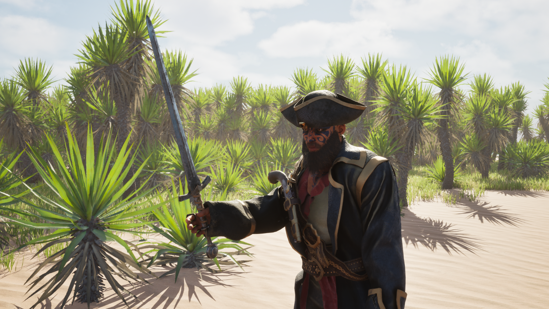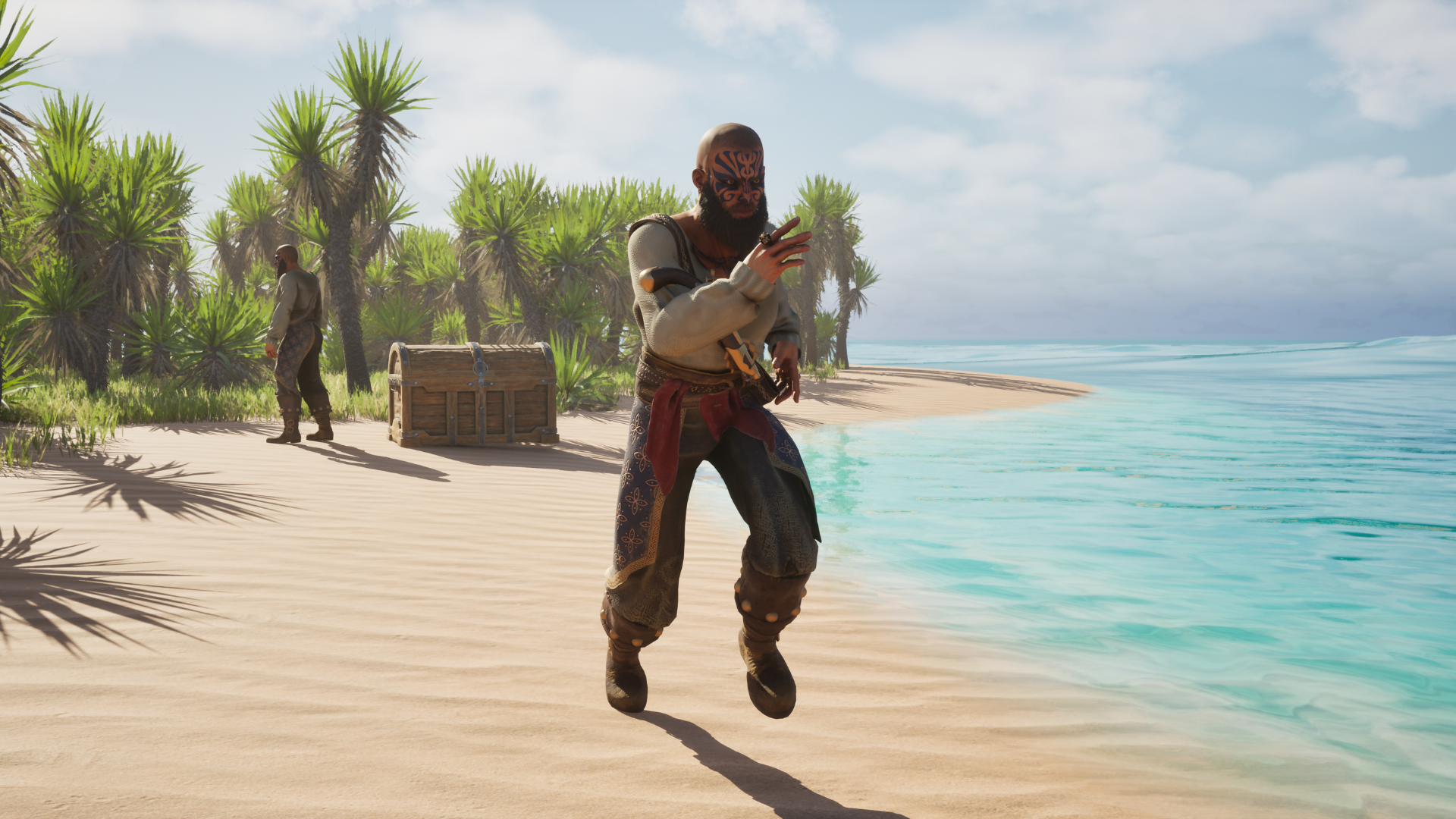 Build a third-person pirate on a tropical island, and interact with the treasure chest.