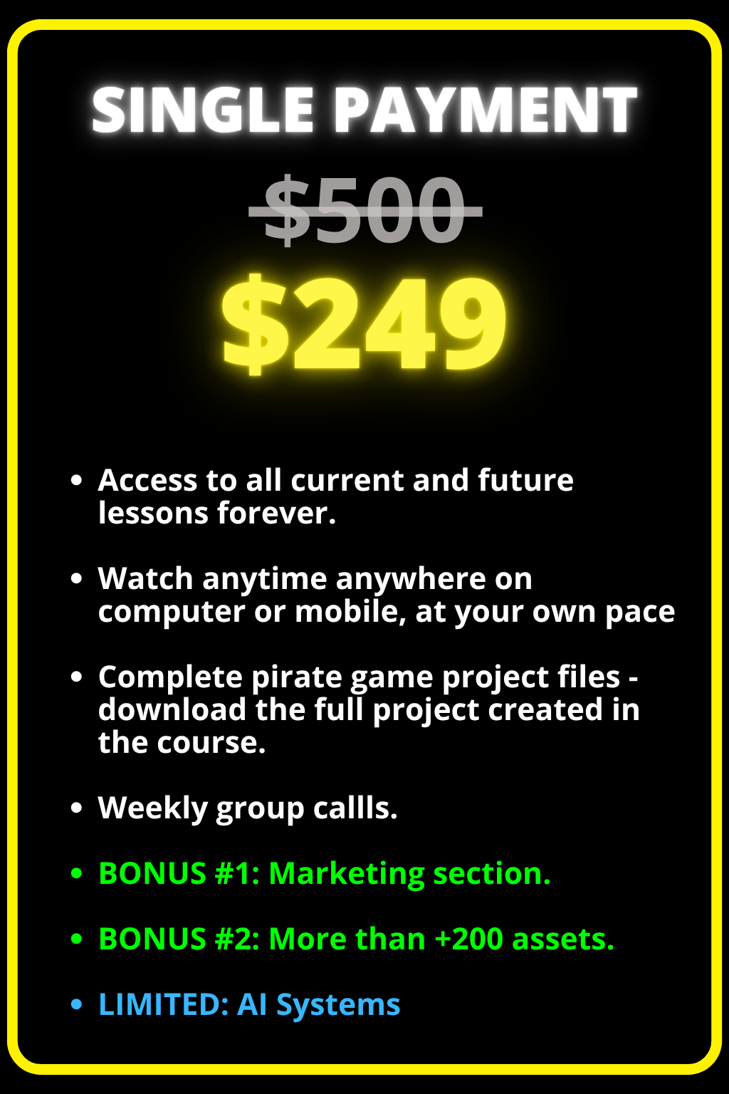 You get lifetime access. One payment and you keep all lessons and future updates forever.